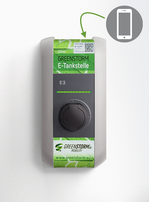 - Scannen Sie den großen QR-Code auf der Vorderseite der Ladestation mit dem QR-Code Scanner Ihres Smartphones.